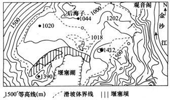 材料二 某区域形成的堰塞湖位置图