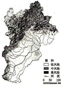 右图示意京津冀地区泥石流灾害风险等级分布,读图回答下列问题。