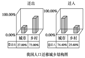 (2)上图表明,目前我国人口迁移的主要特点是: ____________。与发达国家相比较,我国城市化的特点是 _。(4分)