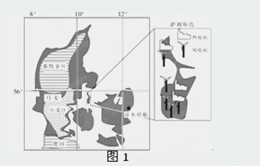 2012年6月15日,国家主席胡锦涛考察丹麦的风能发展,风电占丹麦总发电量的20%,萨姆斯小岛是丹麦的新能源样板区,岛上能源自给自足,几近“零排放”。读图完成1~2题。