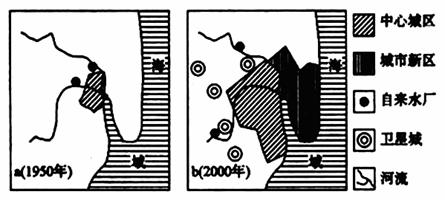 (1)图b与图a相比,回答该城市城市化过程中的表现有 、