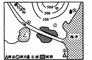 (2)若要在①~④处建设石油化工厂、制碱厂、自来水厂和服装厂。从经济效益和环境效益考虑,试分析其布局的区位因素。