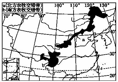 农牧交错带是生态系统较为脆弱的地区。读“我国农牧交错带分布范围图”,完成19~20题。