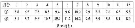 (2)比较图 1中①、②两城市冬季日照时数的差异,并分析原因。( 8分)