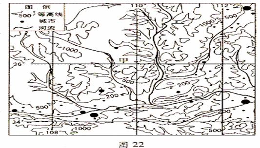 读某区域等高线地形图(图22),回答下列问题。(10分)