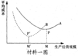 材料一 汽车工业和食品工业的成本与规模的关系示意图。