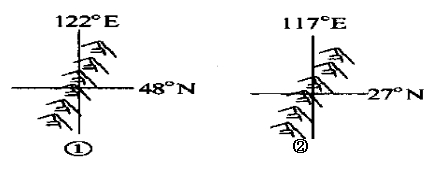 14.山脉②东西两侧地形区的主要地理事物分布的说正确的是 ( )