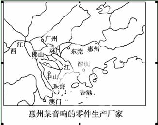 (1)根据材料及所学知识,分析珠江三角洲地区音响零部件生产厂家以惠州为中心形成工业集聚的原因。(4分)
