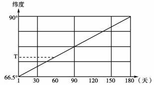 29.若该图表示极昼现象,则T地极昼结束的时间大约在