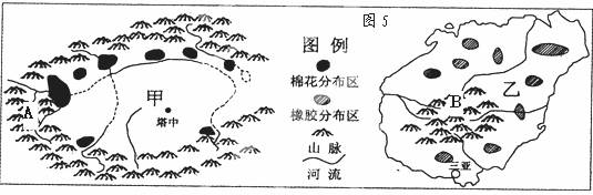 读右图3“我国西北地区某农业区分布示意图”,回答第7-8题。