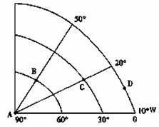 下图中经线间隔相等,读图分析回答20~21题。