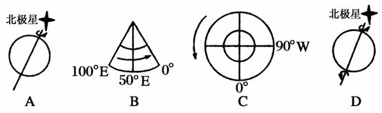 (2)下列四幅图中,能正确表示地球自转方向的是( )