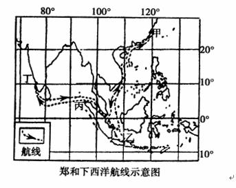 12、明代郑和七下西洋,利用盛行风在甲、丙、丁三地往返,下列叙述正确的是