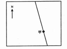 图中的斜线示意晨昏线。甲地经度为75°E。假定中时区区时为6日0时20分。据此完成12—13题。