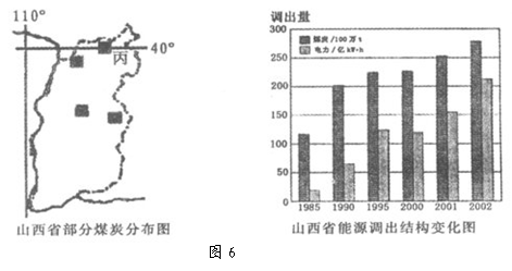 图6所示省区是我国著名的能源基地,读图回答25~26题。