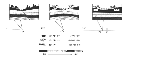 该图中的河流是在自然条件下形成的,甲、乙、丙分别为不同河段上的三个点,根据三处的横截面状况绘制了地形的剖面图,读图回答下列问题。