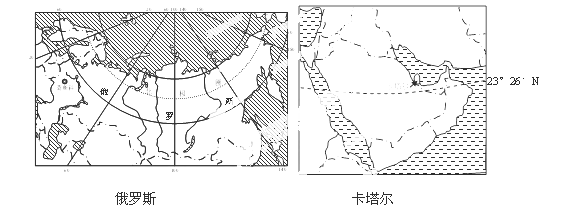 2018年与2022年世界杯足球赛将分别在“航母”大国俄罗斯(面积1700万平方千米)和“袖珍”小国卡塔尔(面积1.14万平方千米)举办。阅读下列材料,完成下列问题。(26分)