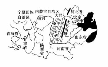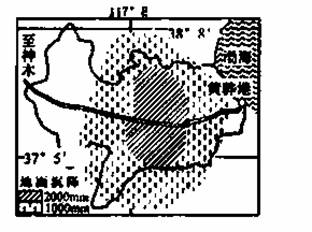下图阴影部分是“我国太行山以西、乌鞘岭以东、秦岭以北、长城以南地区图”,完成12~14题