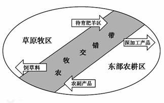 下图示意我国东北农牧交错带生产与生态定位。读图,回答19-20题。