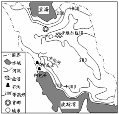 (2)卡维尔(kavir)一词在波斯语中意为“盐碱滩”。这片荒无人烟的地区面积达77000平方千米,主要由干涸的河床、荒漠高原、滩涂及盐碱滩组成。简述卡维尔盐漠的成因。(4分)