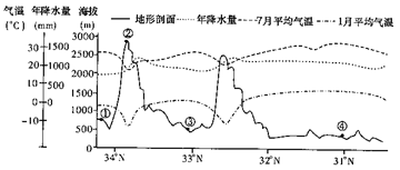 下图是“沿106.5°E经线的地形剖面及相关气候资料图”,据图回答20题。