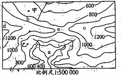 1.如果c、e、d三点连成一线,则此线与下列地理事物最吻合的是