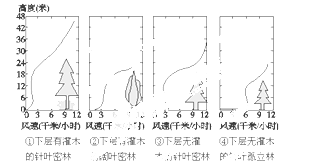 风经过森林后,速度会有所降低。下图表示四类不同结构的森林对风速的影响。完成6~7题。