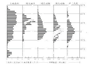 C.低纬地区的种群数量少于中纬地区 D.森林地带的种群数量少于草原地带