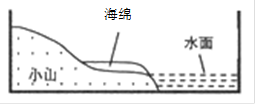 放有海绵的盒子的水面与另一盒子的水面相比