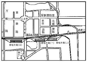 北蜂窝路(宽40米,如加宽则需要至少拆除现有的两座楼房),车站中心距天安门6千米 |
