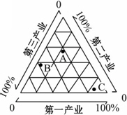 图中A、B、C各点分别代表区域发展不同时期的产业结构特征。从区域发展的过程来看,其正确的顺序是