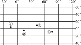 北京时间2010年10月1日18时59分57秒,“嫦娥二号”探月卫星成功发射。“嫦娥二号”发射时,图中①②③④地点最靠近太阳直射点的是
