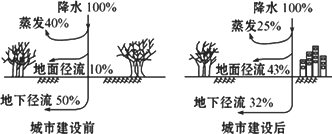下图是某城市建设前后水量平衡示意图,读图回答下题。