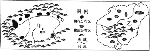 甲、乙两区域分别盛产棉花和天然橡胶,其共同的区位优势是