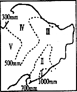 下图为我国东北地区的雨量分布图,回答下题。