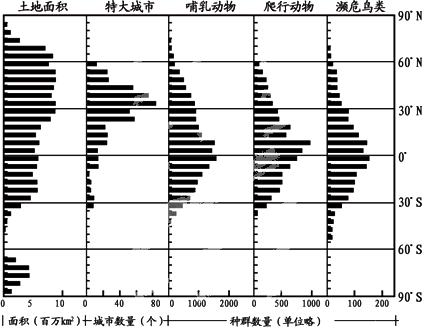 结合图中的信息判断,世界特大城市数量纬度差异的形成,主要由于
