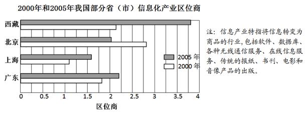 B.2005年西藏区位商比北京高,反映了西藏信息化产业的规模水平比北京高