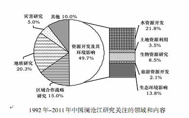 材料三:1992-2011年中国澜沧江研究关注的领域和内容