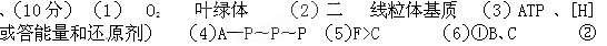 (5)下图二表示棉田内,棉叶在一天内吸收二氧化碳变化情况,如果C、F时间所合成的葡萄糖速率相等,均为36mg/dm2·h,则A、C、F三点的呼吸强度的比较结果是 。试分析产生这一结果的原因: ,其中C点时的呼吸强度为 mgCO2/dm2·h。