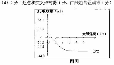 £¨4£©ÔÚÌõ¼þ²»±äµÄÇé¿öÏ£¬ÈôÒÔO2ÎüÊÕÁ¿Îª¹Û²âÖ¸±ê£¬ÔÚͼ±ûÖл³ö¸ÃÖ²ÎïÔÚÃܱÕÈÝÆ÷ÄÚ15¡æÌõ¼þÏÂ1СʱO2µÄ±ä»¯ÇúÏßͼ¡££¨2·Ö£©