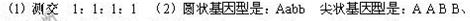 (2)除了上述的3种组合,如果进行尖状×倒扇状,得到的后代表现型只有圆状和尖状,则该圆状的基因型是??????????????????? 。