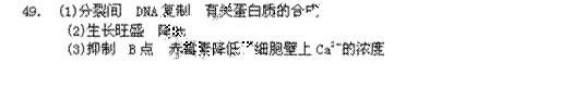 (3)赤霉素促进茎的伸长主要与细胞壁的伸展性有关。有人进行了CaCl2和赤霉素对某植物种子胚轴生长速率影响的实验,结果如下图所示。由图分析可知,一定浓度的CaCl2溶液对细胞壁的伸展起 作用;加入赤霉素溶液的时间在图中的 (A点;B点;C点)。根据上述实验分析赤霉素促进茎伸长的可能原因是 。![]()