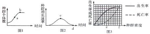 C.图1中b点和图3中f点的增长速率与图2中的d点对应