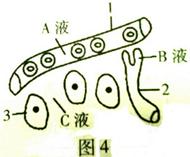 图4表示人体皮下的组织,A.B.C表示细胞外液。下列叙述不正确的是