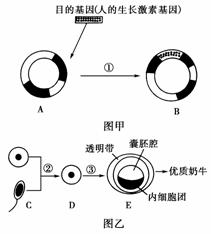 (1)图甲中①过程属于转基因奶牛培育过程中的________阶段,此过程中用到的酶包括__________________。