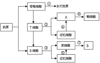 下图为人体免疫部分过程示意图。请据图回答(括号中