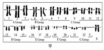 (1)甲图为科研机构对某人染色体进行的分析结果。请指出该人的性别________,从染色体组成看,该人是否患病?________;如果患病,则患__________________。