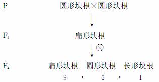 萝卜的根形是由位于两对同源染色体上的两对等位基因(D、d和R、r)决定的。现用两个纯合的圆形块根萝卜作为亲本进行杂交,结果如下图。请分析回答: