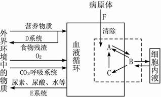 下图是高等动物体内细胞与外界进行物质交换示意图:?