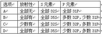 一段时间后,检测子代H5N1病毒的放射性及S、P元素,下表对结果的预测中,最可能发生的是( )